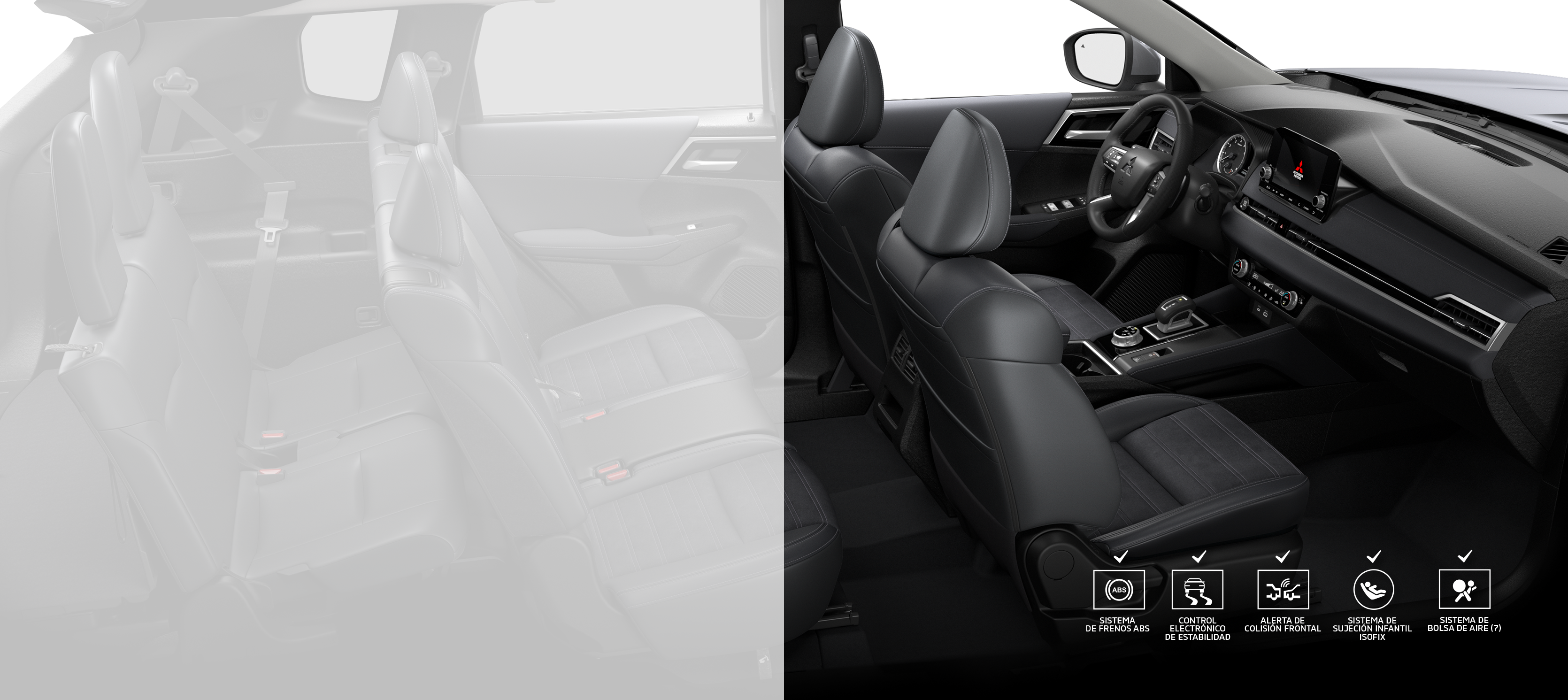 Deléitate con el refinamiento al ingresar al All-new OUTLANDER. Experimenta una nueva sensación de confianza y protección cada vez que entres y sientas la riqueza de materiales en los mandos de accionamiento del volante y la palanca de cambios. Con una artesanía elegante que inspira, estarás listo para afrontar el camino que tienes por delante.
