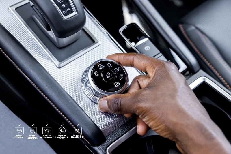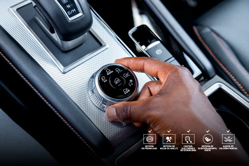 Selecciona entre seis modos de manejo diferentes para disfrutar de una conducción segura en cualquier condición de la carretera: NORMAL, ECO, ASFALTO, GRAVA, NIEVE y MUD (solo para 4WD).